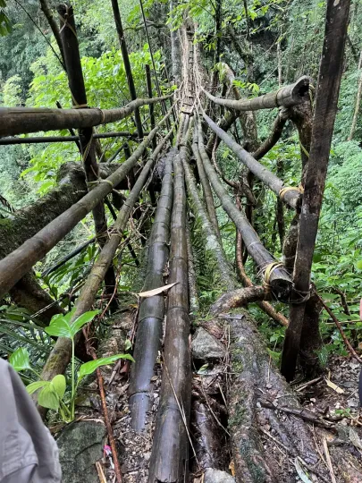 Die heute ältesten Beispiele der Baubotanik sind die lebenden Brücken der Khasi in Nordostindien. Hier werden Wurzeln des Gummibaums gezielt verflochten und über Generationen gelenkt, bis sie stabile Brücken bilden. Auch in Europa gibt es historische Formen: geflochtene Hecken, Laubengänge oder die Tanzlinden in Franken, deren Kronen über Jahrhunderte in Form gehalten wurden. Sie zeigen, wie Bäume nicht nur als Dekoration verstanden wurden, sondern als lebende Strukturen mit Nutzen – kulturell, sozial und funktional.