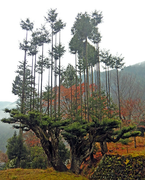 In Europa wurden Hasel, Eichen, Eschen, Weiden und viele andere Baumarten geschneitelt. Und auch auf anderen Kontinenten entwickelte sich diese Technik. Japanische Handwerker perfektionierten sie im 14. Jahrhundert mit der Daisugi-Methode: Auf breit geschnittenen Sicheltannen wuchsen neue, gerade Stämme – „Bäume auf Bäumen“. Sie lieferten das perfekte Holz für den Tempel- und Teehausbau.